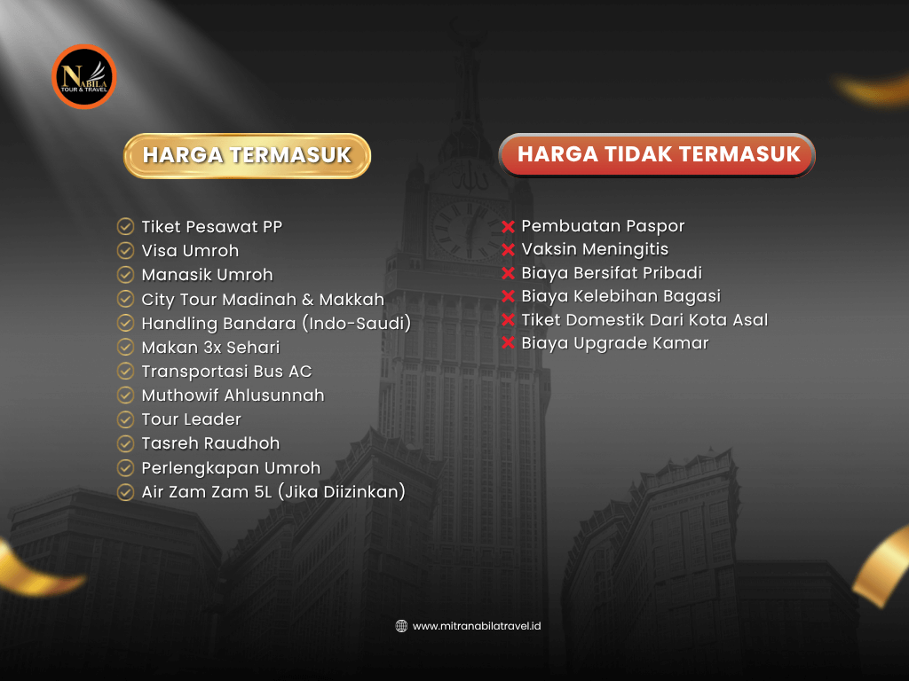 Syarat dan ketentuan ini dibuat untuk kenyamanan bersama dan dapat diperbarui sewaktu-waktu sesuai kebijakan perusahaan dan regulasi perjalanan umroh dari pemerintah Indonesia maupun Arab Saudi.