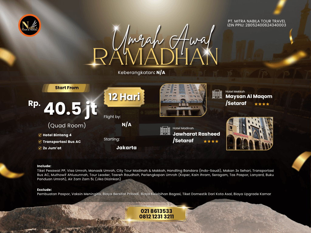 Syarat dan ketentuan ini dibuat untuk kenyamanan bersama dan dapat diperbarui sewaktu-waktu sesuai kebijakan perusahaan dan regulasi perjalanan umroh dari pemerintah Indonesia maupun Arab Saudi.